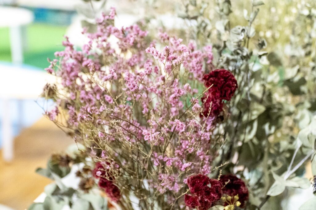 アートデザインラボのスペシャルイベント「コドモデパート 」の素材パートナーとして、役目を終えた花々をドライフラワーに加工し提供させていただきました。