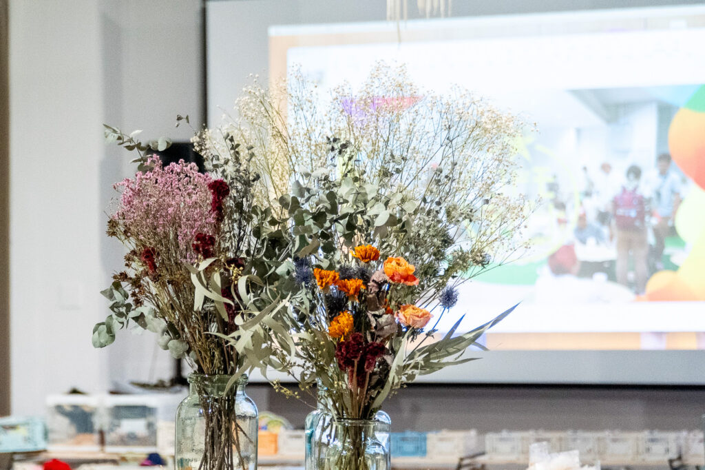 役目を終えた花材が子どもたちの創造のタネとしてアップサイクルされる、そのような素晴らしい機会となりました。